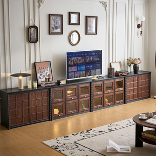 法式 复古实木电视柜模块组合柜中古风骨骼线客厅落地柜高级感斗柜