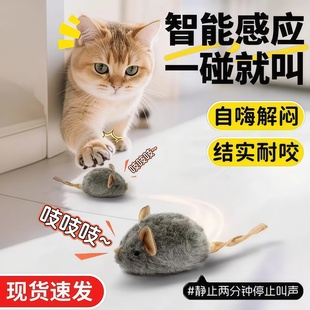 猫咪玩具叫叫鼠智能感应轻触发声毛绒仿真小老鼠猫咪自嗨解闷玩具