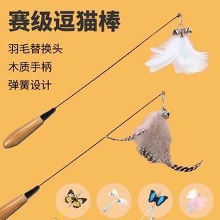 CFA逗猫棒赛级羽毛带铃铛可替换头宠物幼猫消耗体力猫咪玩具耐咬