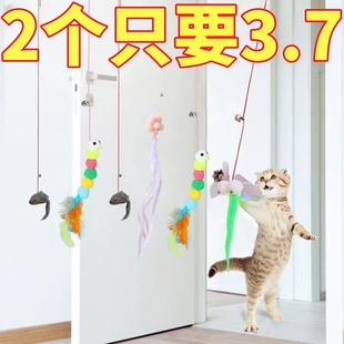 猫玩具自嗨解闷荡秋千挂门悬挂弹力羽毛逗猫棒铃铛小老鼠猫咪用品