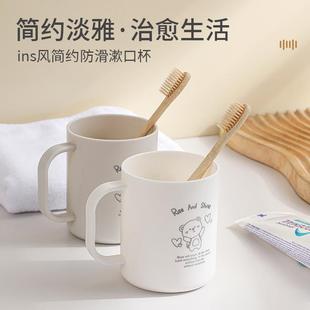 塑料条纹漱口杯简约家用洗漱杯情侣ins风大容量加厚牙刷杯带手柄