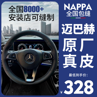 NAPPA手缝真皮方向盘套适用于保时捷宝马奔驰大众特斯拉本田思域
