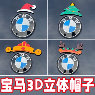 宝马3D立体车贴鹿角发财圣诞帽子汽车改装 饰适配所有车型车标贴 装