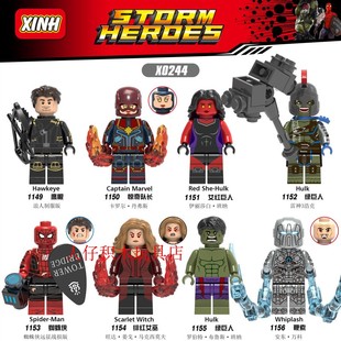 欣宏X0244复联4鹰眼惊奇队长红绿巨人蜘蛛侠鞭索拼装 积木人仔玩具