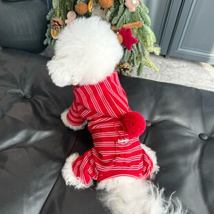五只小白熊原创宠物衣服红色高弹条纹百搭打底衫 狗狗猫咪保暖内搭