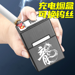 • 20支装 铝合金烟盒充电打火机一体便携男创意防风软硬翻盖高档抗压