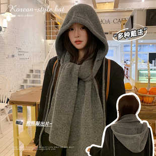 韩系ins针织帽子围巾一体二件套女冬新款 保暖百搭毛线护耳帽防寒