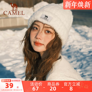 骆驼奶芙帽羊毛纱针织帽秋冬季 女冷帽滑雪保暖毛线帽蓝色帽子 新款