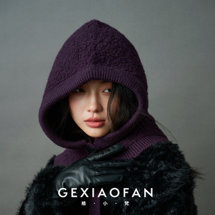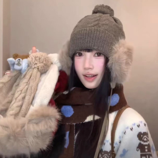 日系复古保暖大头围毛线帽子女2025冬季 防寒护耳一体套头帽潮 新款