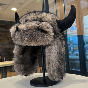仿貂毛牛角雷锋帽男女冬季 加绒加厚皮草防寒护耳帽东北户外牛头帽