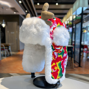 可爱鹿角雷锋帽男女东北大花毛绒帽子秋冬季 骑车防风保暖护耳棉帽