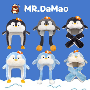 可爱毛绒腮红小企鹅合集护耳帽子女秋冬季 小鱼卡通加厚保暖雷锋帽