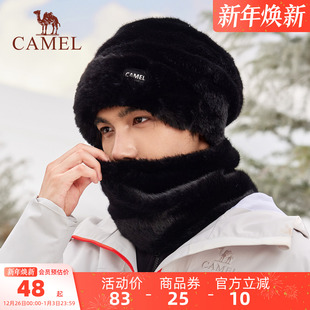 骆驼加绒保暖帽男帽子围脖两件套仿貂毛女加厚东北防风防寒包头帽