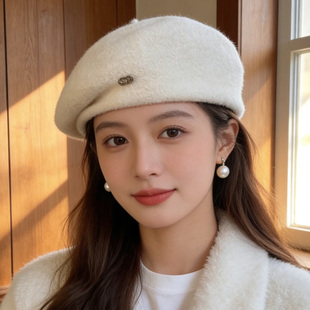气质贝雷帽 羊毛呢帽保暖时尚 25年新款 小香风画家帽女士秋冬时尚