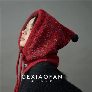 格小梵 ·扎染巴拉克拉法帽秋冬保暖护耳帽子围巾一体针织毛线帽