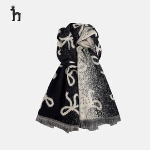 哈吉斯船长渐变蝴蝶结双面围巾女冬季 保暖气质百搭高级感围脖披肩