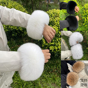 皮草大衣专用袖 口女冬季 套防寒保暖毛毛护腕毛圈 真狐狸毛袖 免安装