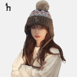 哈吉斯船长针织帽女秋冬季 毛球显脸小护耳毛线帽加厚保暖雷锋帽子