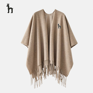 哈吉斯船长燕麦色大披肩外搭女士披风斗篷冬季 保暖护肩颈围巾 新款
