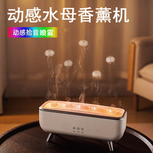 动感水母加湿器家用卧室静音声控拾音创意火焰氛围桌面精油香薰机