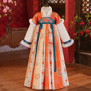 公主裙敦煌风 过年服女孩古装 儿童汉服女童加绒加厚连衣裙冬季 唐装