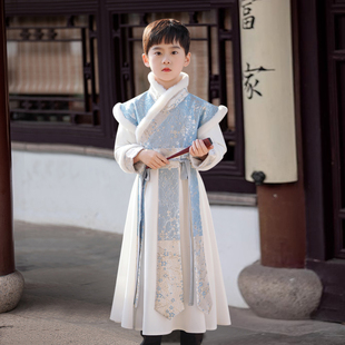 古装 冬季 演出服加绒加厚国学服 中国唐装 儿童汉服男童拜年2025新款