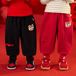 宝宝童装 红色儿童拜年服女童长裤 女宝衣服加厚 子冬装 嘟嘟家男童裤