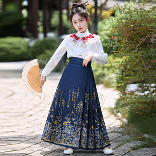 花朵刺绣明制汉服新年国风马面裙套装 中式 新款 小虎帕蒂女童冬装