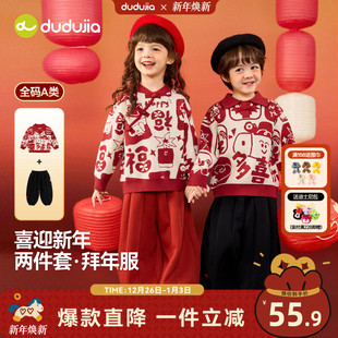 子女童上衣儿童新年装 宝宝针织毛衣裤 冬 拜年服冬季 嘟嘟家男童套装