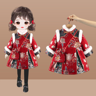 女宝宝新年喜庆拜年服 中国风中小童加绒唐装 女童旗袍2025新款 冬装