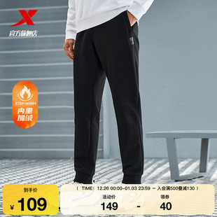 收口男子休闲裤 特步加绒卫裤 保暖厚实运动裤 针织束脚长裤 男冬季