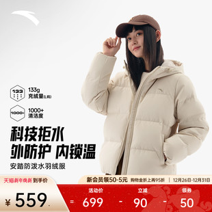 安踏防泼水羽绒服女士冬季 宽松保暖连帽面包服外套162547911 新款