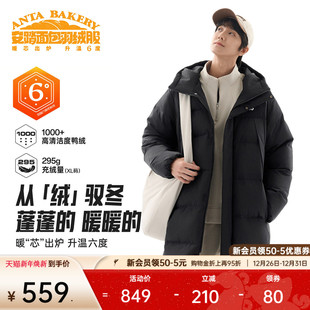 新款 安踏面包羽绒 2025冬季 过膝运动羽绒服男士 保暖连帽棉服 长款