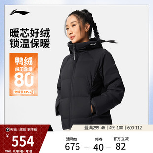 女装 短款 连帽鸭绒运动外套 官方新款 李宁航天动态保暖羽绒服女冬季