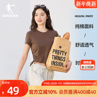 女士绑带透气收腰短款 乔丹短袖 新款 女2025夏季 纯棉休闲百搭 T恤衫