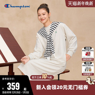 圆领裙子 纯色百搭长裙休闲长袖 Champion冠军连衣裙女2025秋季 新款