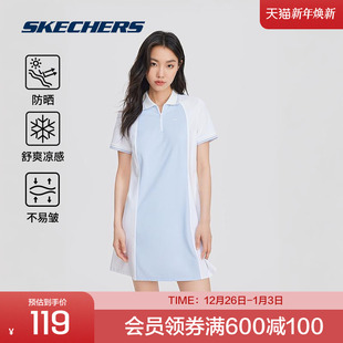 斯凯奇官方outlets2025秋冬女撞色针织POLO连衣裙防晒凉感休闲裙