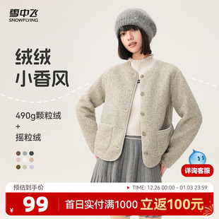 摇粒绒外套小香风上衣千金风气质开衫 雪中飞2025秋新款 女士短款