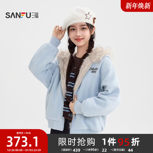 • 512261 小熊耳朵连帽保暖加绒派克服女装 三福加厚外套2025新款 冬季