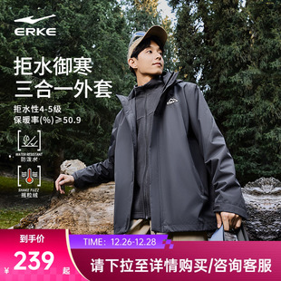 乔丹户外三合一风衣男生2025冬季 保暖防风冲锋外套防泼水登山 新款