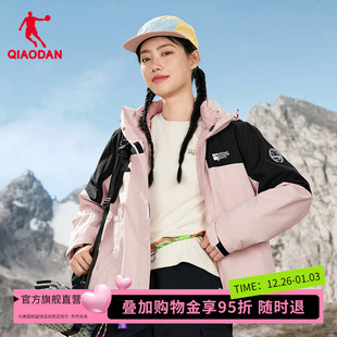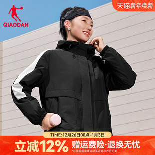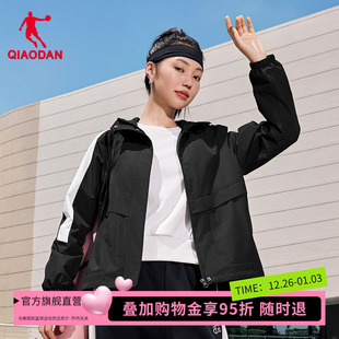 拼接户外登山外套商场同款 中国乔丹梭织防风连帽风衣女冬季 新款