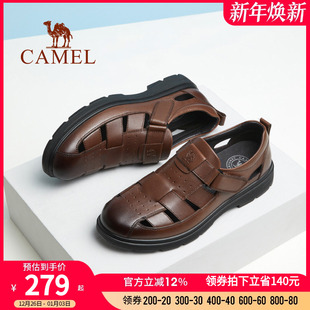 透气真皮软底舒适沙滩鞋 休闲百搭镂空商务凉鞋 新款 骆驼2025夏季