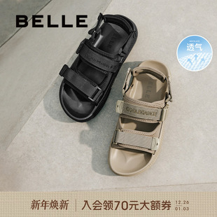 厚底魔术贴沙滩鞋 百丽男士 新款 男25夏季 A1922BL5 透气休闲运动凉鞋