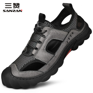 户外休闲网面鞋 三赞运动凉鞋 包头沙滩鞋 真皮透气防臭网眼鞋 男夏季