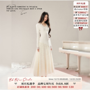 蕾丝鱼尾网纱连衣裙秋冬收腰显瘦百搭修身 月下舞步 高级 BLUE