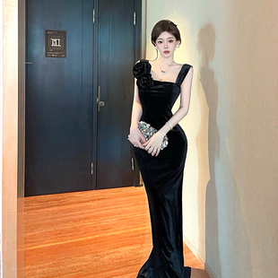 轻奢小众晚礼服高级感气质显瘦金丝绒宴会连衣裙时尚 单肩性感长裙