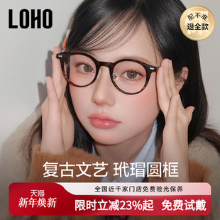 LOHO复古圆框玳瑁眼镜框女可配近视度数镜片板材素颜变色眼睛框架