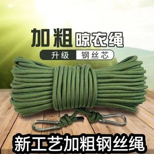 尼龙钢丝芯捆绑绳晾衣绳晒被绳户外防风防滑 加粗20米长军绿色