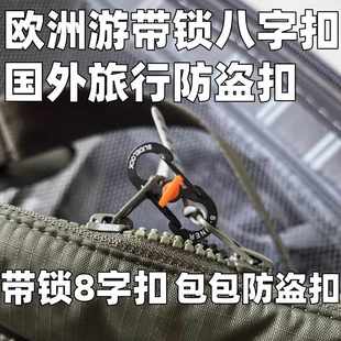 欧洲游防盗神器带锁八字扣出国旅行防盗扣背包拉链锁双肩包8字扣