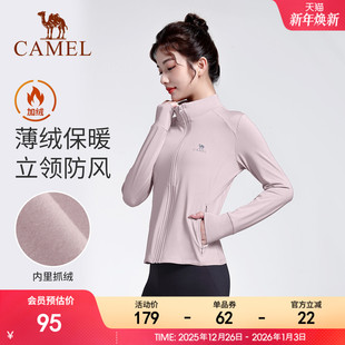 骆驼健身T恤女秋冬立领瑜伽上衣保暖加绒健身服休闲运动长袖 衫